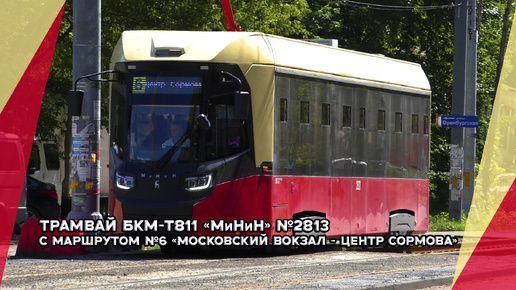 Трамвай БКМ-Т811 МиНиН №2821 с маршрутом №6 "Московский вокзал - Центр Сормова"