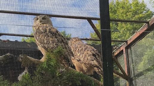 Вольер с обыкновенными филинами в Ленинградском зоопарке.
