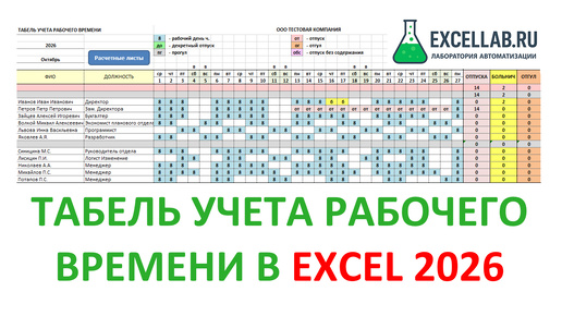 Как сделать табель учета рабочего времени 2026 в Excel — пошаговая инструкция и готовый шаблон