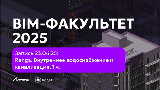 BIM-ФАКУЛЬТЕТ 23.06.25: Renga. Внутреннее водоснабжение и канализация. 1 ч.