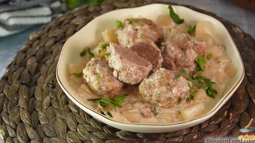 Колобки с нежным гарниром. Кольраби, тушенная с тефтелями