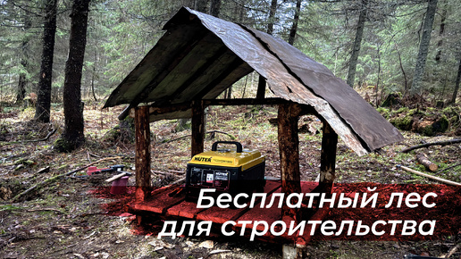 Бесплатный материал в лесу. Будка для генератора из валежника.