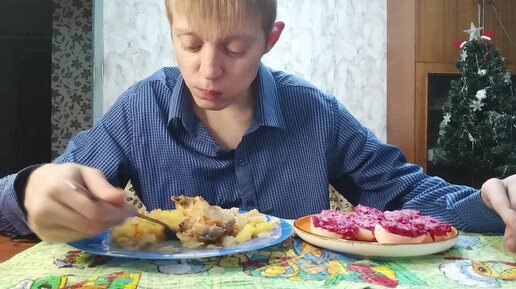 Мукбанг// Капуста Тушеная С Картошкой И Курицей Фаршированные Яйца