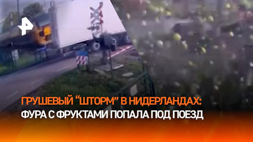 Грушевый шквал в Голландии: поезд снес фуру с фруктами во время непонятного перформанса на путях