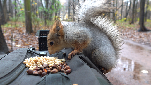 Парк. Дождь. Белки. Зарисовка