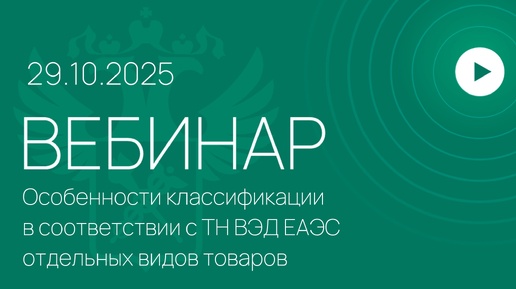 Вебинар ФТС России на тему «Особенности классификации в соответствии с ТН ВЭД ЕАЭС отдельных видов товаров»