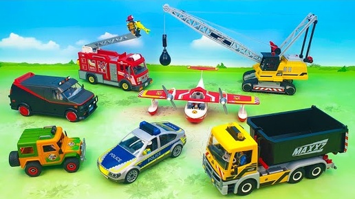 Fire Truck, Police car, Excavator, Rescue Plane, Dump Truck, Crane | Emergency Vehicles for Kids