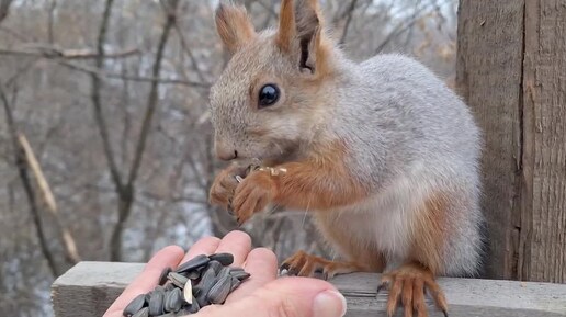 Вот такой малыш прибежал к нам подкрепиться!) 🥰 Он совсем не боится нас, даёт себя погладить и оочень медленно ест...🐿