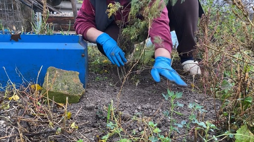 Пасадила полынь, освободила цветы от листьев .
