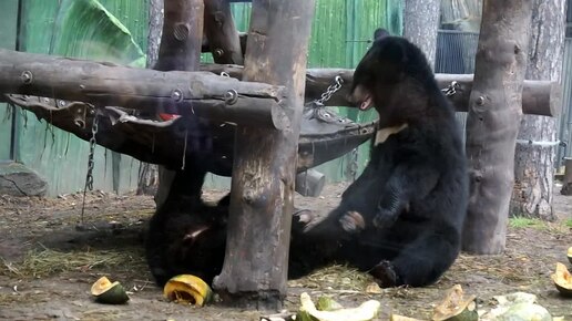 Медвежонок Фима хочет с Дусей поиграть и танцует от счастья, а Дуся хочет поесть тыкву.