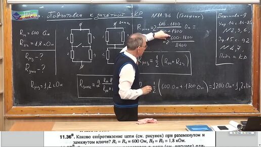 Задача на определение сопротивления цепи при разомкнутом и замкнутом ключе