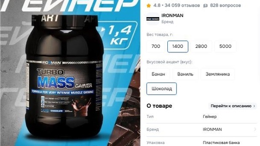 Обзор распаковки посылки Гейнер для набора массы Шоколад 1400 г.с ozon доставка Почта России