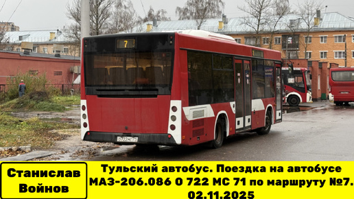 Тульский автобус. Поездка на автобусе МАЗ-206.086 О 722 МС 71 по маршруту №7. 02.11.2025