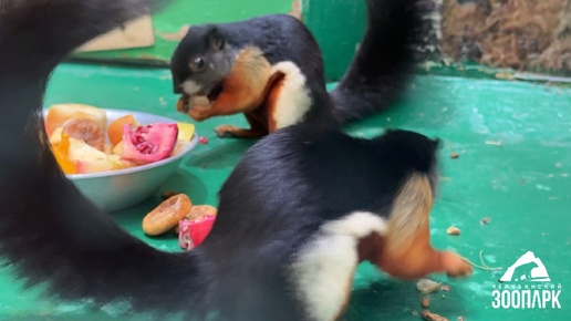 Совсем забыли сообщить, что белки Превоста вместе со своими детёнышами тоже давно переехали в зимний вольер.