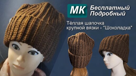 Тёплая шапочка крупной вязки-Шоколадка🧶🍫 Вяжем шапку спицами.