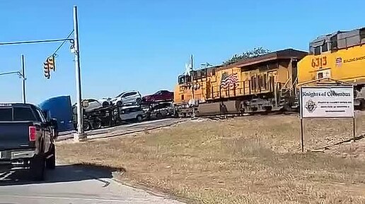 Поезд на полной скорости снёс загруженный автовоз в Техасе
