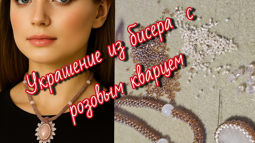 Мои работы #112. Украшение из бисера и розового кварца. Жгут с кулоном "Аристократка".