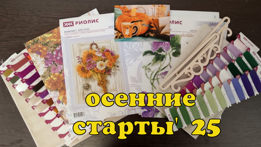 26/25: ОСЕННИЕ СТАРТЫ 2025: "Клематис" и "Осенний зонт" от Риолиса/ "Чашка Хеллоуин" от Оксаны Ершовой/ Вышивка крестиком/