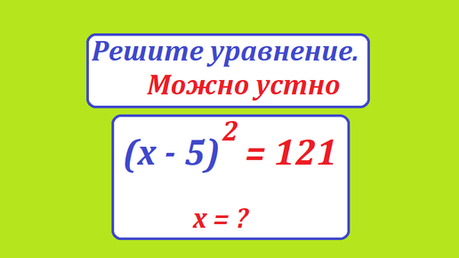Реште уравнение. (x - 5)^2 = 121. Можно устно