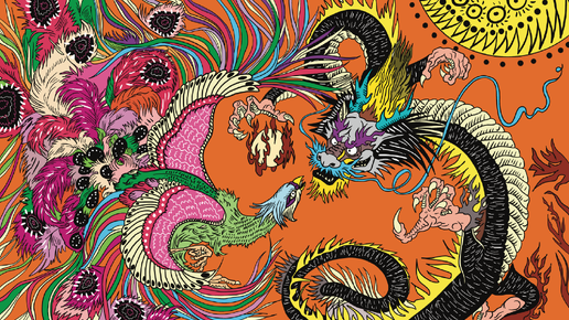Рисую битву дракона и птицы в восточном стиле 🐲🦚Процесс рисования! Таймлапс 🕰️