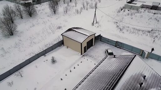 Гараж 7,5×6,5 м с навесом из сэндвич-панелей | Тёплый Контур