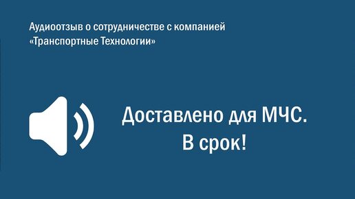 Доставлено для МЧС точно в срок! Транспортные Технологии