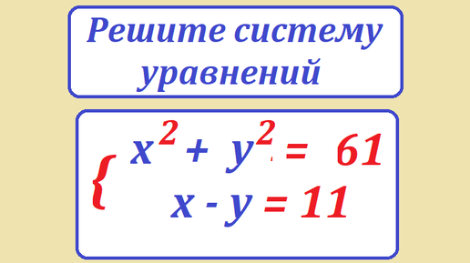 Решите систему уравнений x^2 + y^2 = 61; x - y = 11