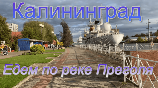Едем на катере с гидом по реке Преголя в Калининграде.