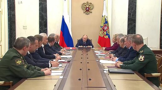 Президент России Владимир Путин в Кремле провел оперативное совещание с постоянными членами Совета Безопасности РФ.