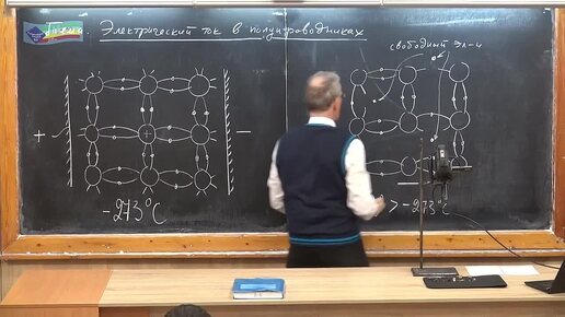 Структура кристаллической решетки кремния при температуре выше температуры абсолютного нуля. Электронный ток.