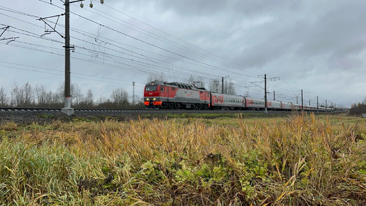 Электровоз ЭП2К-457 с пасс.поездом на перегоне, октябрь 2025 года
