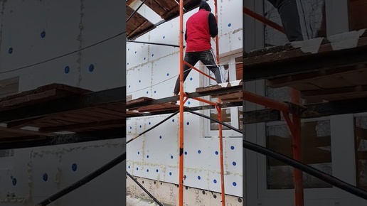 Фасадные Работы, утепление фасадов газобетонного дома пенопластом СФТК, пена в швах и Бийский Дюбель