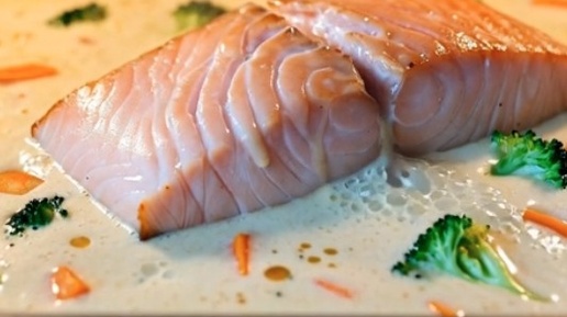 Запечённая горбуша с овощами в сливочном соусе