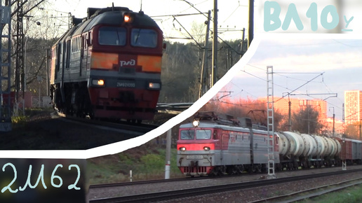 Дневной тепловоз и вечерний электровоз 2М62 и ВЛ10у, а также вечерняя электричка