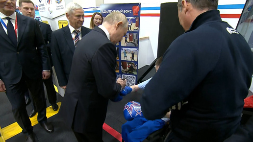 «Чемпионом должен становиться»: Путин подписал перчатки юному спортсмену