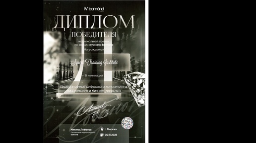 Syucai-institute.com победитель в номинации "Лидеры в сфере цифрового консалтинга, личностного и бизнес-развития"