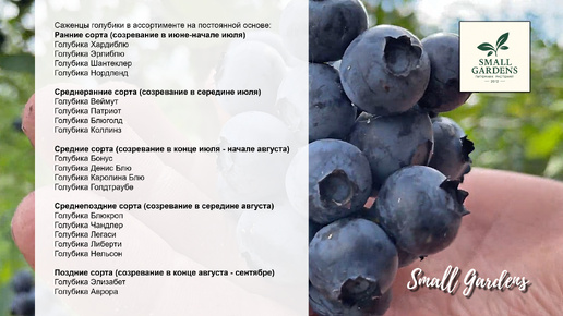 Саженцы голубики Ранние Средние и Поздние сорта Small Gardens