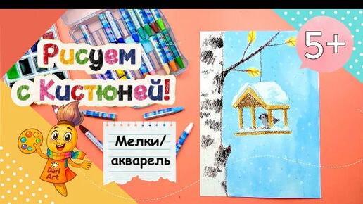 Рисуем с Кистюней - _Первый снег и скворечник_ __ Мелки, акварель
