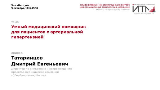 Татаринцев Дмитрий Евгеньевич. Умный медицинский помощник для пациентов с артериальной гипертензией
