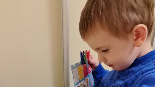 2.10г. Отлично справляется с прищепками, только негативизм 3-х леток мешает. 😉