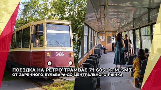 От Заречного Бульвара до Центрального рынка! Поездка на ретро-трамвае 71-605 (КТМ-5М3) №3406