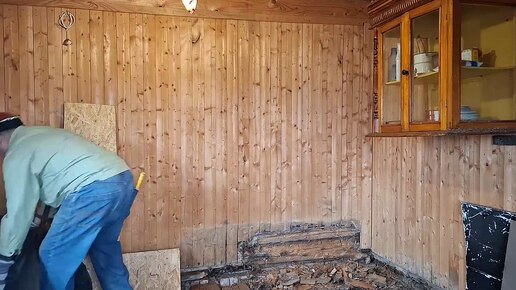 Разбираю вагонку в новом доме, нижние венцы сруба под замену, гусь, много гуся, кофейная чашка.