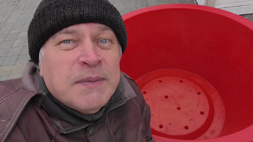 Гигантский большой красный горшок. Установили новогоднюю ёлку на площади