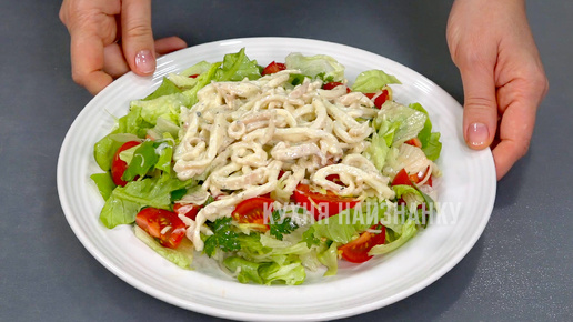 Приготовила на новогодний стол и не прогадала: даже Оливье и Шуба были не так популярны (салат "Цезарь с кальмарами")