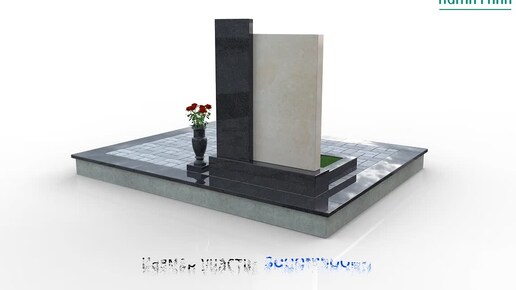Памятник на кладбище из гранита Crema Marfil и Габбро-диабаз с накладными буквами и крестом из нерж469