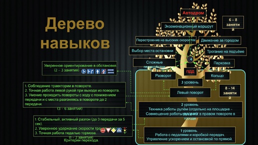 Дерево навыков ученика. 1 ур. Освоение базовых навыков управления автомобилем.