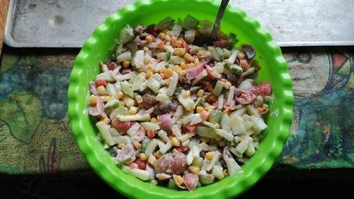 Рецепт салата 🥗 помидоры огурцы перец 2 яблоки 2 кукуруза 🌽 сметана и соль это вкусно 😋 5 11 2025