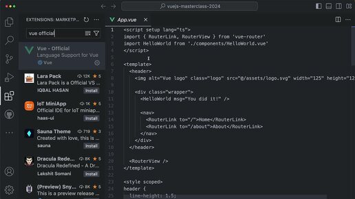 05 - Powering Up VS Code P1 Vue.js 3 Official Extension