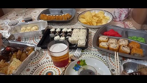 Заказала РОЛЛЫ и ПИЦЦУ INYAN муж жарит шашлыки