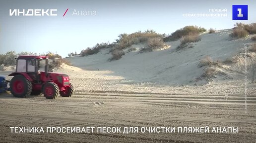 Техника просеивает песок для очистки пляжей Анапы